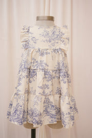 Picturesque and beautiful, the Countryside Dreams Dress is the perfect ode to summertime fun. In a cream hue, this kids dress is covered in a royal blue floral countryside print. The dress has a high neckline with functional buttons on the upper back of the dress with short ruffle detailed flutter sleeves and a pretty tiered skirt.