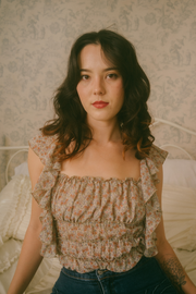 A sweet, darling and comfortable piece, the Delia Bodysuit comes in a soft muted cream hue and is scattered in a muted orange, blue and cream floral print. This beautiful piece has short sleeves with exaggerated ruffle detailing along the top and throughout the bodice. A timeless and comfortable beauty, it has a scoop neckline and fitted bottom half. Style with your favorite high waisted mom jeans, a dash of red lipstick and a messy updo for the perfect on-the-go look.
