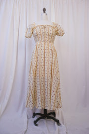 - s: 49” length / 14” bodice / 32”-36” bust (stretches with smocking) / 26”-30” waist (stretches up to 38” with smocking ) / open hip / 10” sleeve