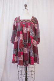 The Harvest Patchwork dress is made for a Sally who never stopped looking for her Jack. This three-quarter sleeve babydoll mini dress comes in an intricate patchwork print in delicious berry reds, browns, and blues. The square neckline and bust feature red and black plaid piping that repeats on the cuffs and bottom hem. This fully-lined, swingy mini features two hidden pockets and is perfect for stealing a moonlit kiss from the Pumpkin King.