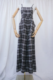 The Pippy overalls are a 1970s dancing dream. Made of lightweight cotton in a perfectly autumnal brown and cream gingham, these wideleg palazzo stunners feature a high waist, deep side pockets at both hips, and a functional central pocket on the chest. The overalls fasten with three wooden buttons at the left hip, and the shoulder straps are fully adjustable thanks to silver o-rings.
