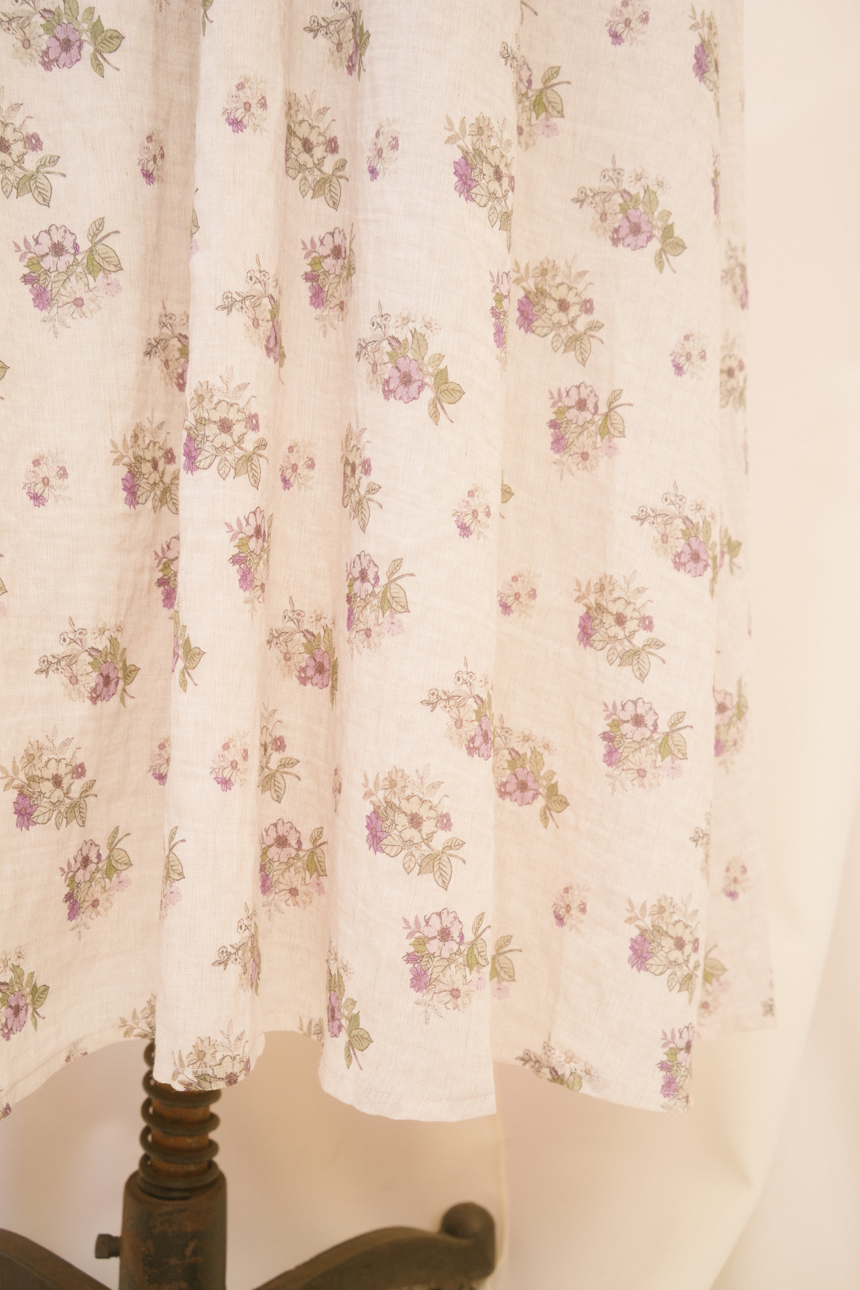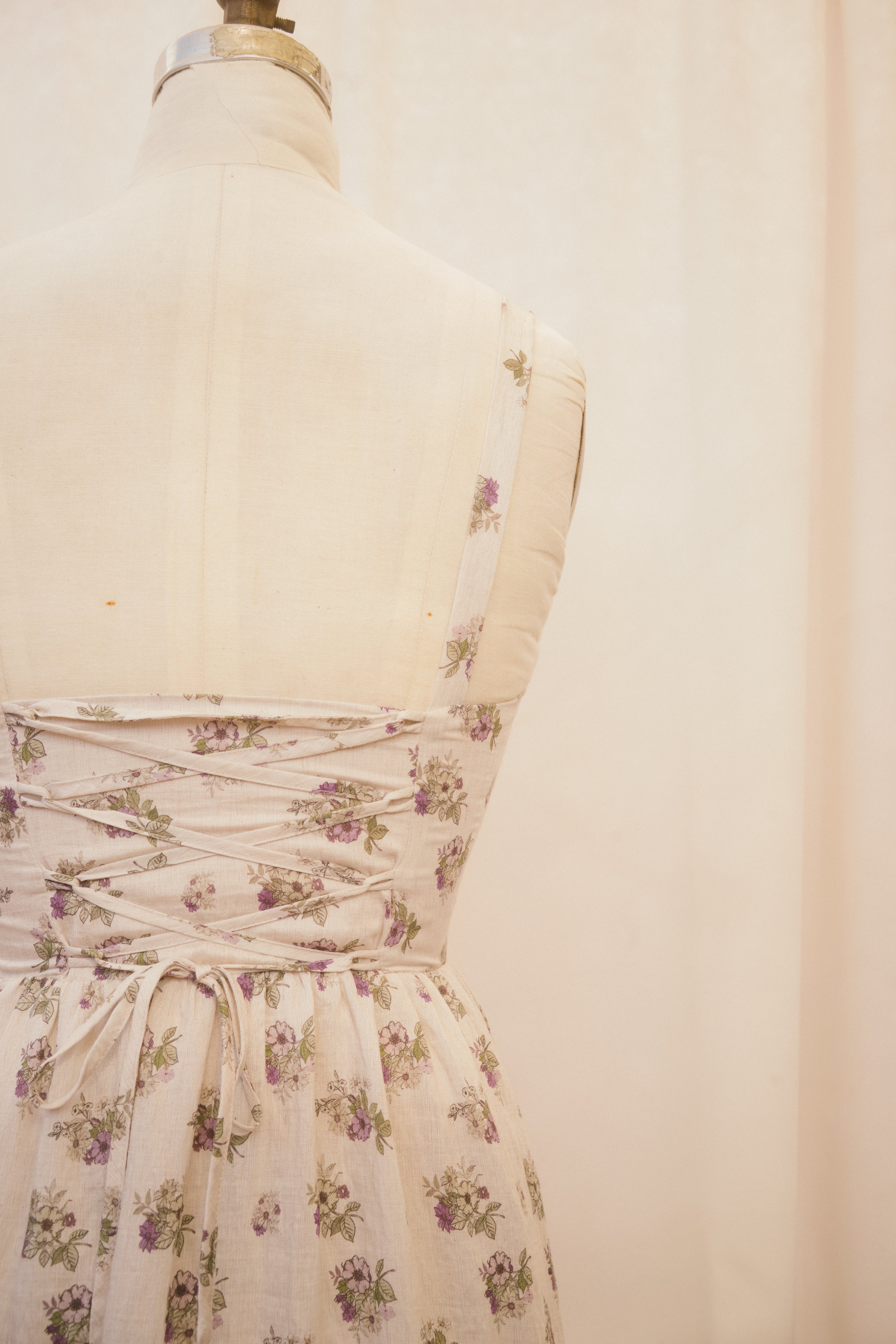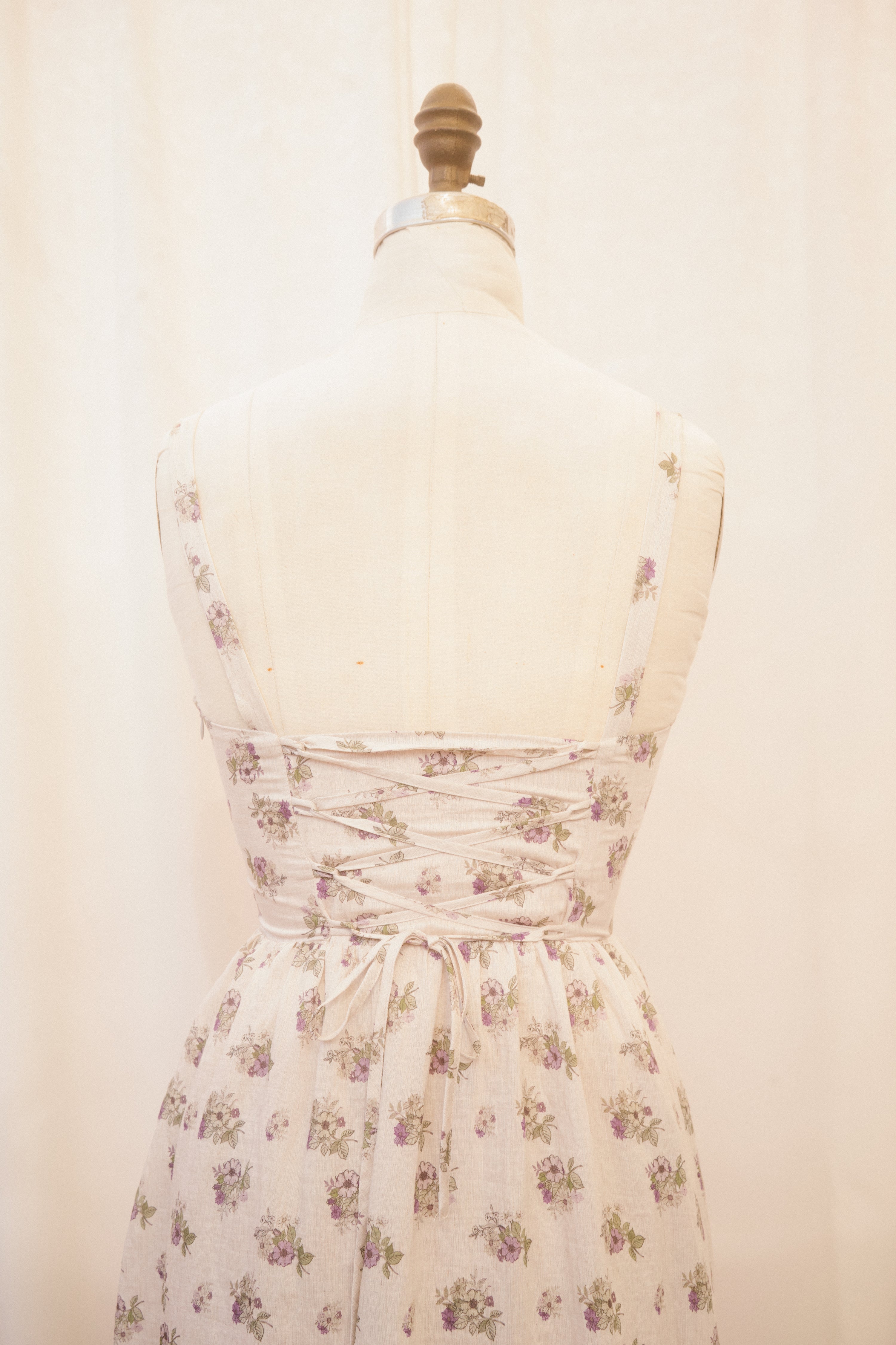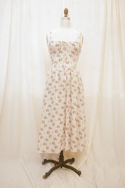 Slip into the Reggie dress when you're ready to make an impression. This spaghetti strap midi sundress comes in a heather grey fabric, speckled with delicate green and violet bouquets. The vintage inspired basque waistline with vertical corset-boning along the front bodice and functional corset-lacing on the back bodice ensures a snatched fit, while the hidden side-zipper makes for easy dressing. The undewire cups feature a functional drawstring bustline which ties in a bow at the center of the bust. Style with just about anything, because the fit of this dress is impeccable!