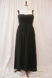 The Sable dress is a versatile cutie that will keep you comfy and polished from day to night, and everywhere in between! This inky black a-line maxi sundress features elastic spaghetti straps adorned with dainty, fluttery ruffles. The sweetheart neckline boasts a delicate ruffle trim, and the bodice is fully smocked for a perfect, easy fit. The flirty slit up to the right knee is perfect for showing off a cute pair of espadrilles!